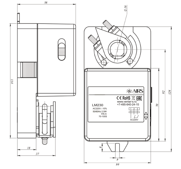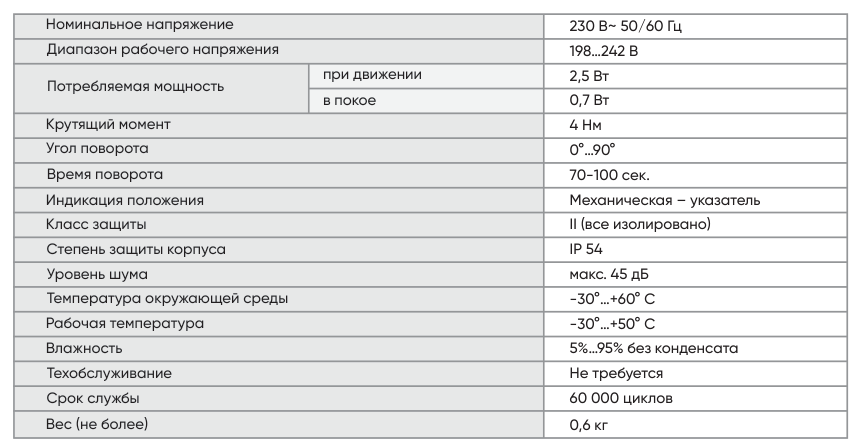 - Управление воздушными клапанами площадью до 0,8 м2