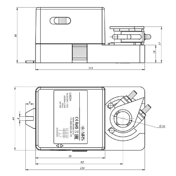 Электропривод легко устанавливается непосредственно на вал створки клапана круглого сечения 6…16 мм или квадратного сечения 5…11 мм и закрепляется с помощью специального хомута. К корпусу клапана электропривод крепится при помощи универсальной крепежной пластины или непосредственно на корпус клапана.