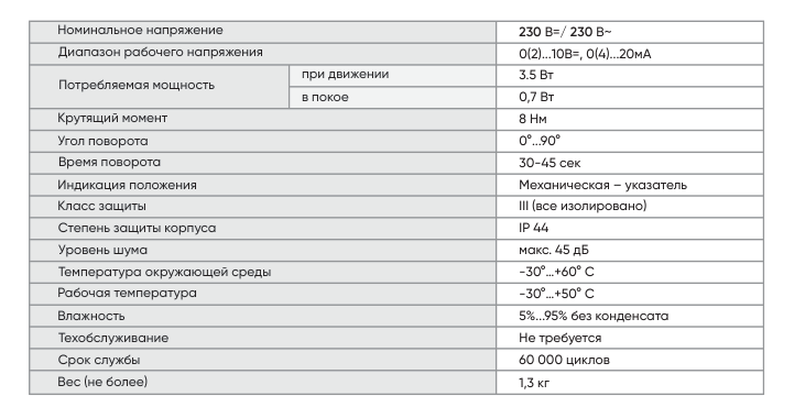 - Управление воздушными клапанами площадью до 1,5 м2