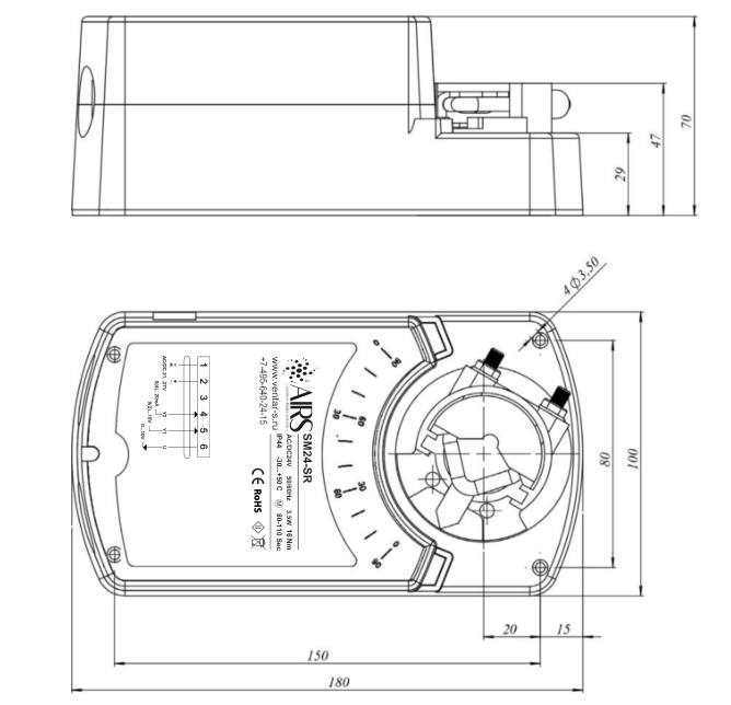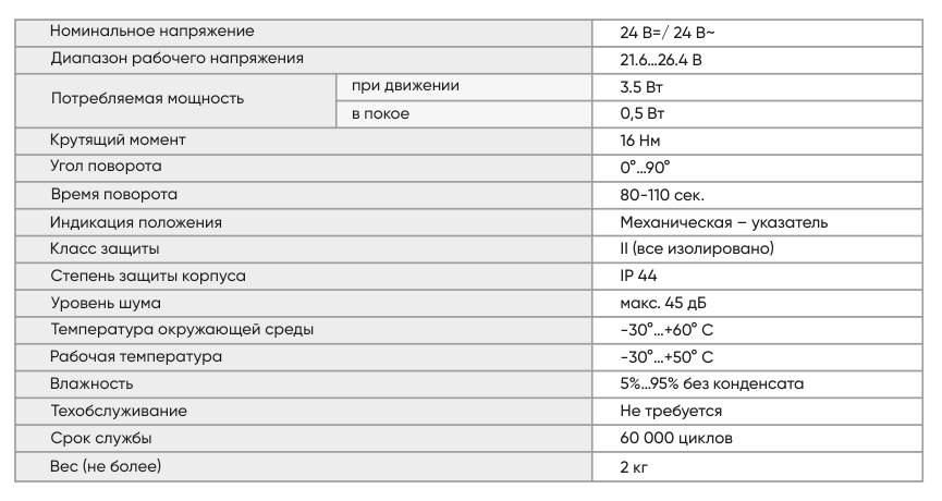 - Управление воздушными клапанами площадью до 1,5 м2
