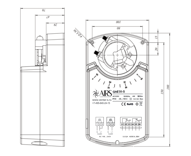 - Управление воздушными клапанами площадью до 6,2 м2