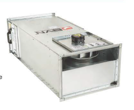 Применяется в системах вентиляционных каналов прямоугольного сечения. Равномерный поток воздуха обеспечивается благодаря высоким аэродинамическим характеристикам структуры лопастей рабочего колеса вентилятора. Рабочее колесо вентилятора с назад загнутыми лопатками.