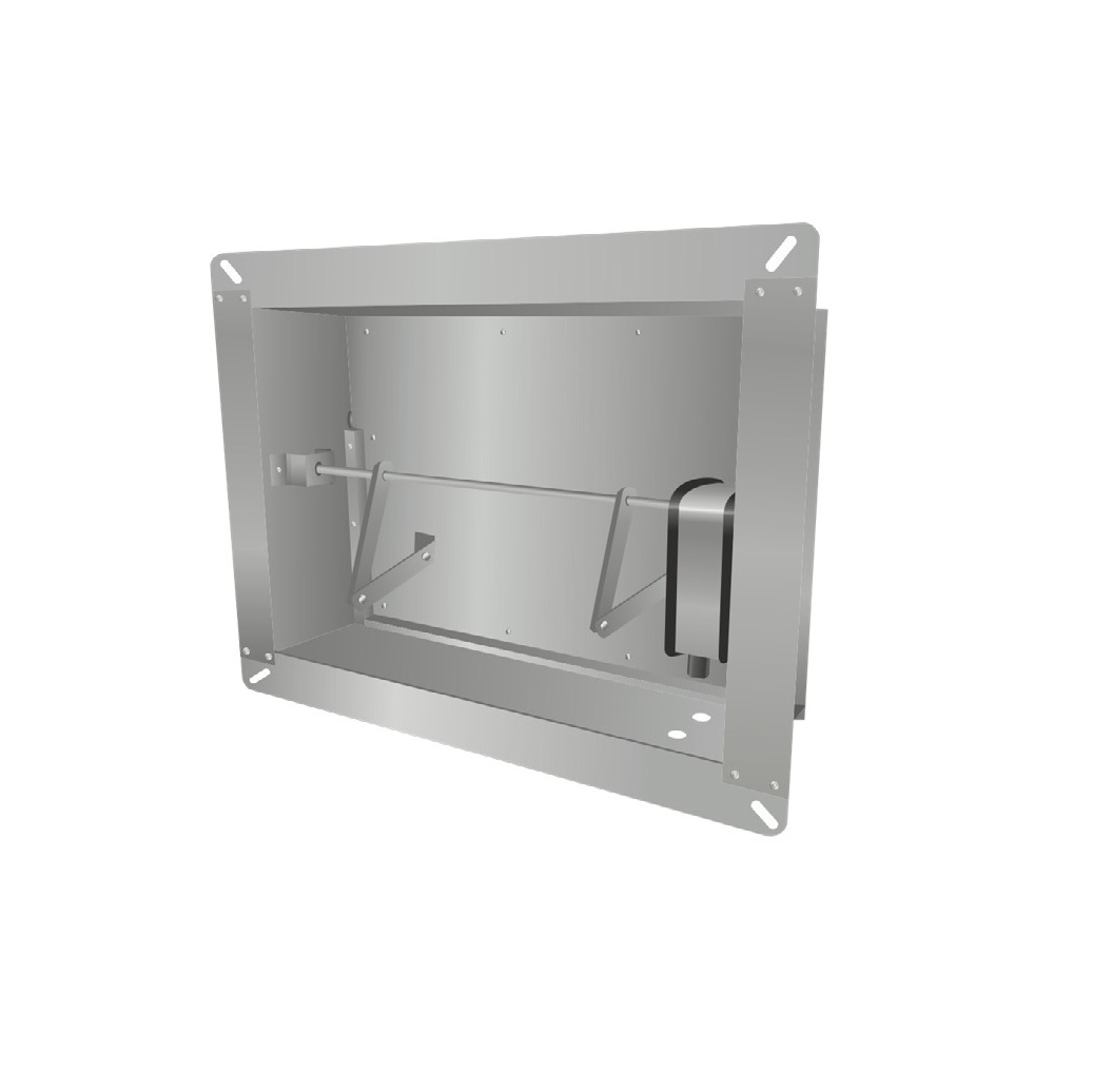 одностворчатые стенового исполнения с одним фланцем для крепления к стене, где отсутствует вылет заслонки за лицевую сторону корпуса клапана