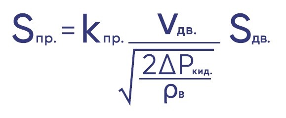 ΔРкид. – перепад давления на клапане при закрытой двери, соответствует избыточному давлению в тамбур-шлюзе, Па