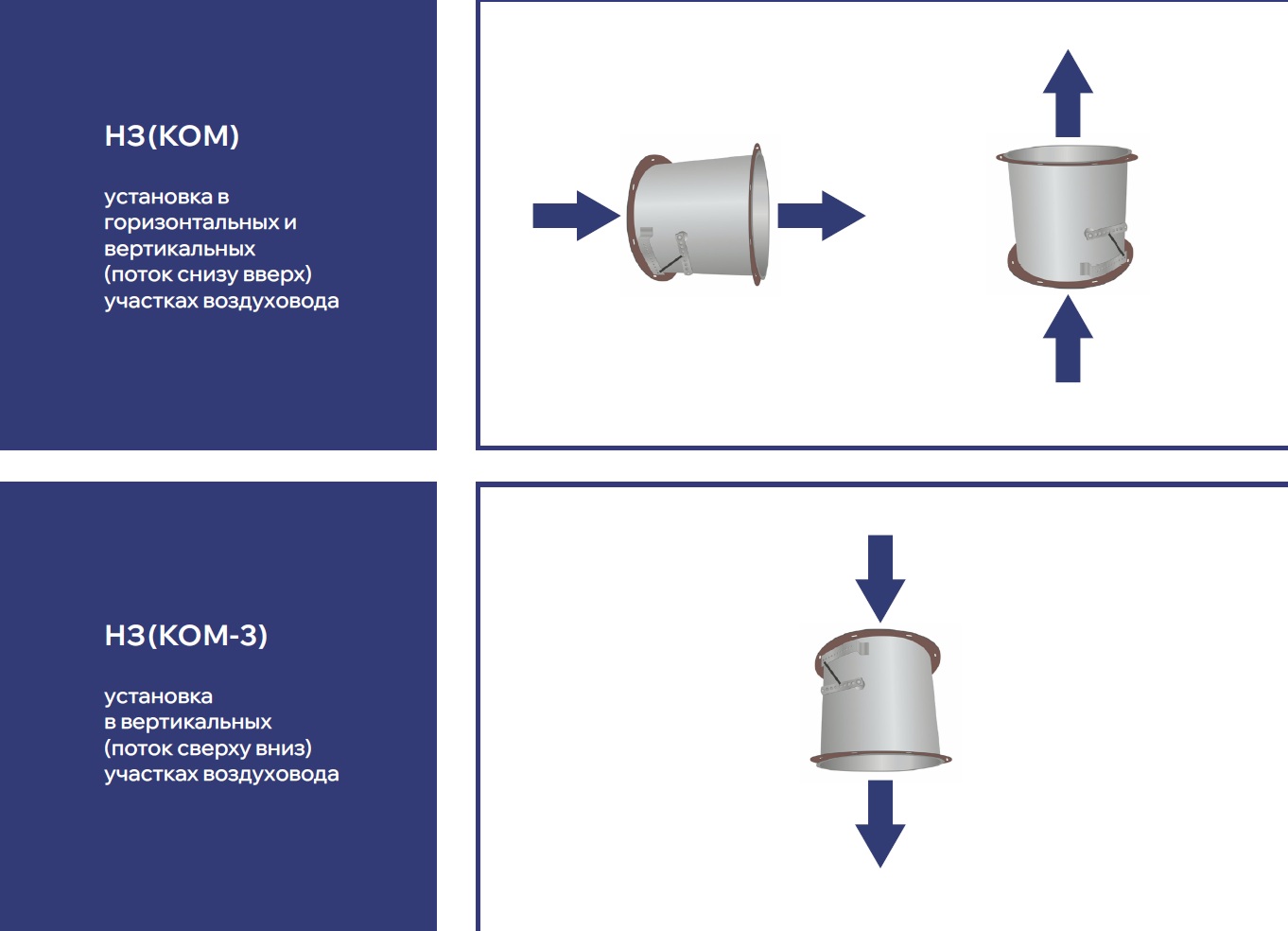 Клапаны устанавливаются в канал с разным направлением воздушного потока: