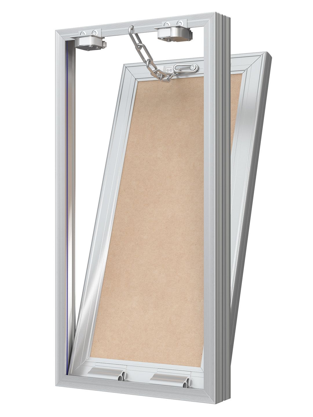Люки изготавливаются из алюминиевого профиля. Дверца заполнена влагостойким гипсокартоном (ГКЛВ). Конструкция оснащена нажимным замком, резиновым уплотнителем, страховочным механизмом для безопасного открытия дверцы, имеет возможность полного снятия дверцы. Максимальный угол открытия — 180 градусов.