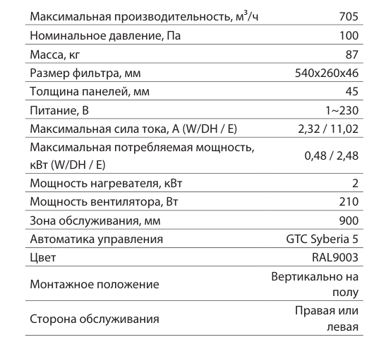 -30 oC, рекомендуется установить предварительный канальный нагреватель воздуха.