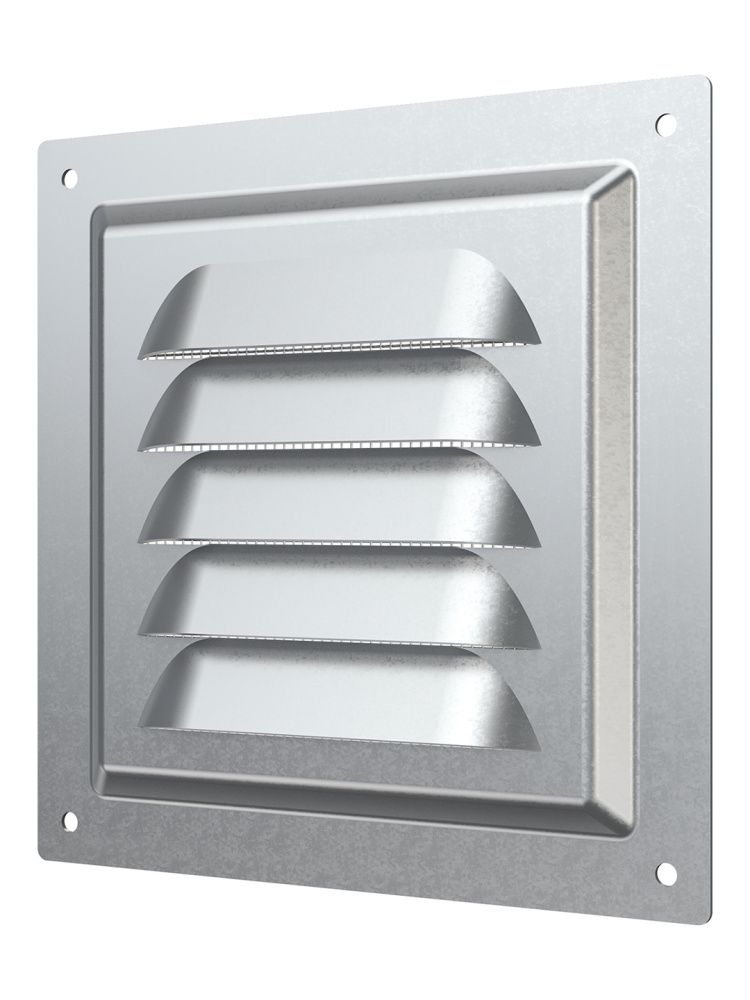Вентиляционная решетка МЦ изготавливается из оцинкованной стали. Имеет наклонные жалюзи и антимоскитную сетку для защиты от насекомых. Сетка устанавливается в специальном углублении.