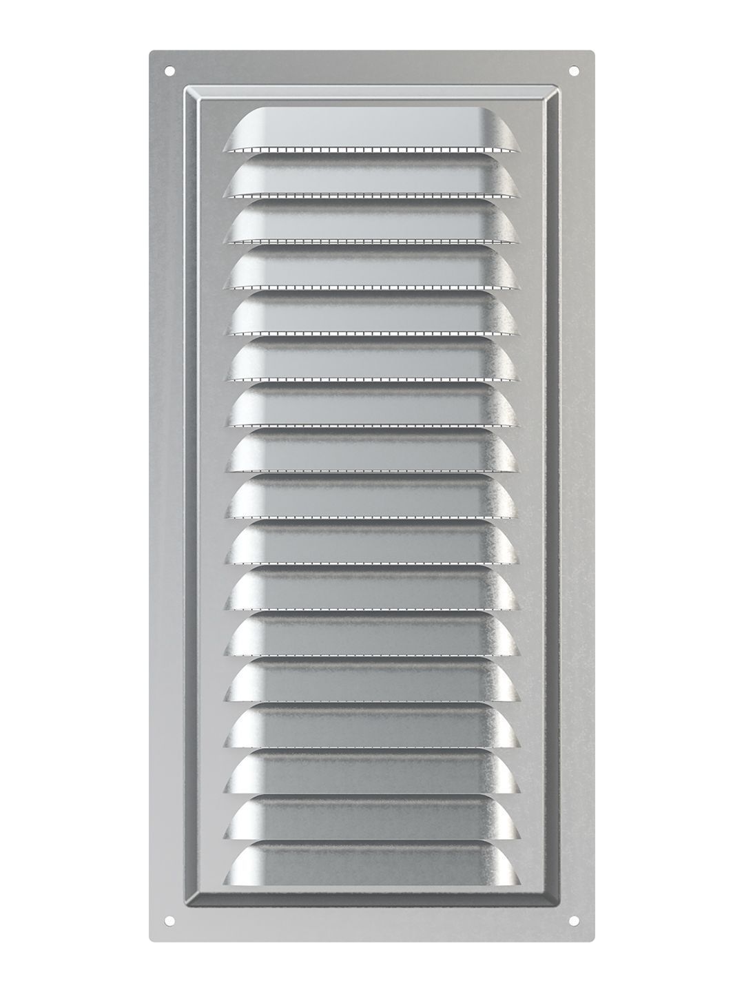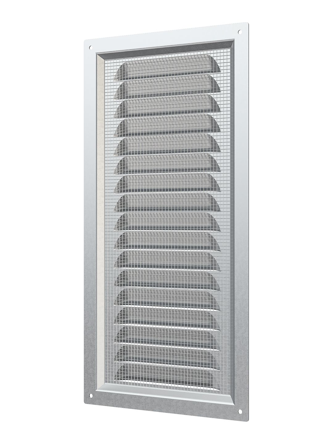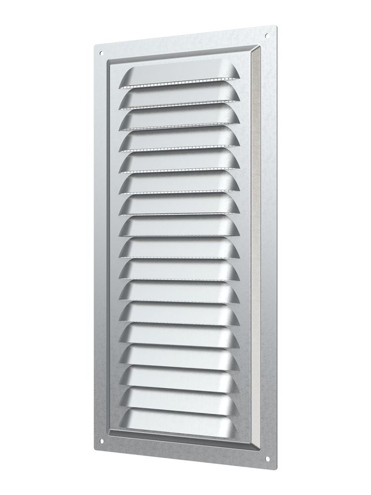 Вентиляционная решетка МЦ изготавливается из оцинкованной стали. Имеет наклонные жалюзи и антимоскитную сетку для защиты от насекомых. Сетка устанавливается в специальном углублении.