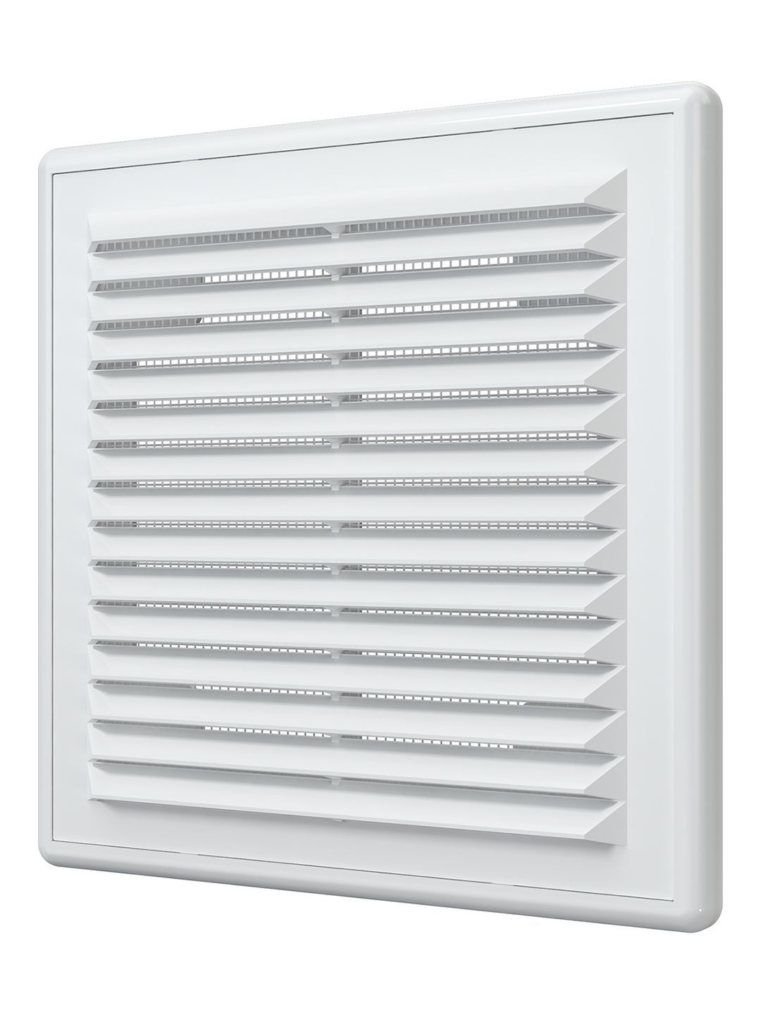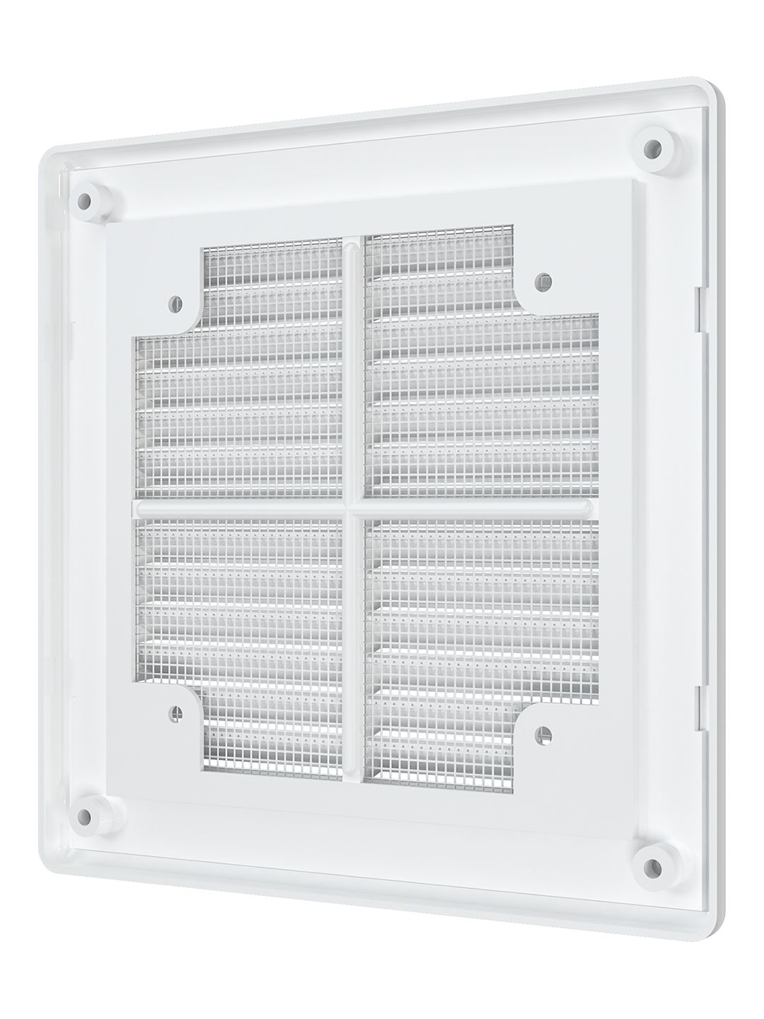 Вентиляционная решетка Р не крепится непосредственно к стене или к потолку, а вставляется в рамку, которая монтируется на поверхности. Это позволяет легко снимать изделие для обслуживания, надо лишь достать решетку из рамки, потом также легко вернуть на место. Антимоскитная сетка защищает от насекомых, а наклонные жалюзи помогают скрыть вентиляционный выход.