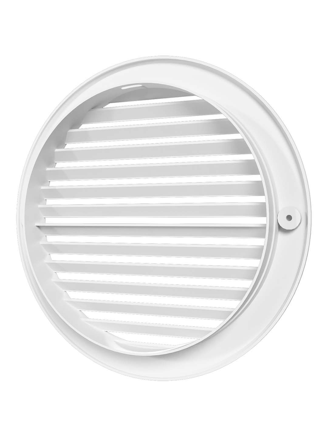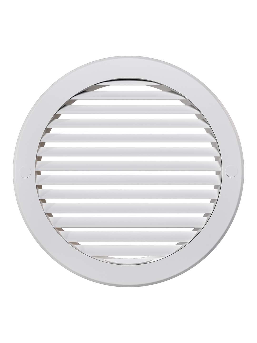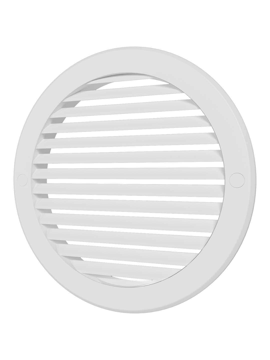Решетка РК оснащена наклонными жалюзи, скрывающими от глаз вентиляционную шахту. Монтируется с круглыми пластиковыми воздуховодами ВП, соединяется при помощи фланца.