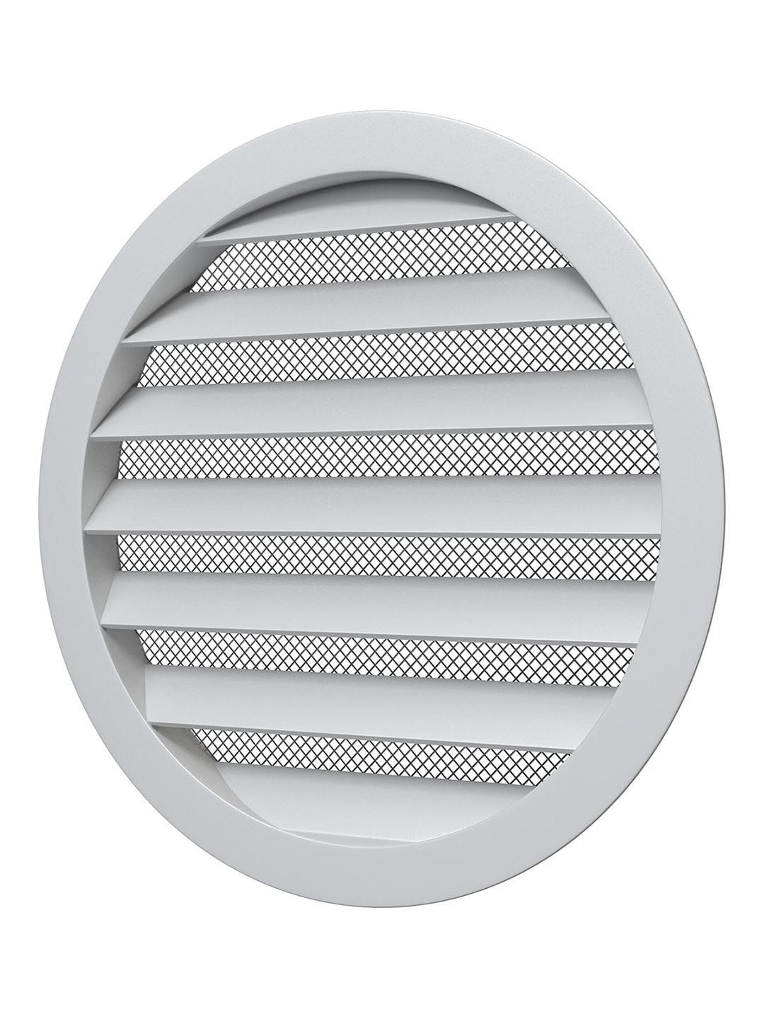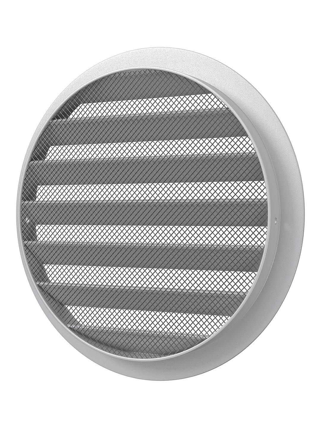 Наружная приточно-вытяжная решетка РКМ монтируется на внешних стенах. Имеет наклонные жалюзи, скрывающие от глаз вентиляционный канал. Решетка изготовлена из алюминиевого сплава, антимоскитная сетка — из нержавеющей стали. Соединяется с воздуховодами через круглый фланец.