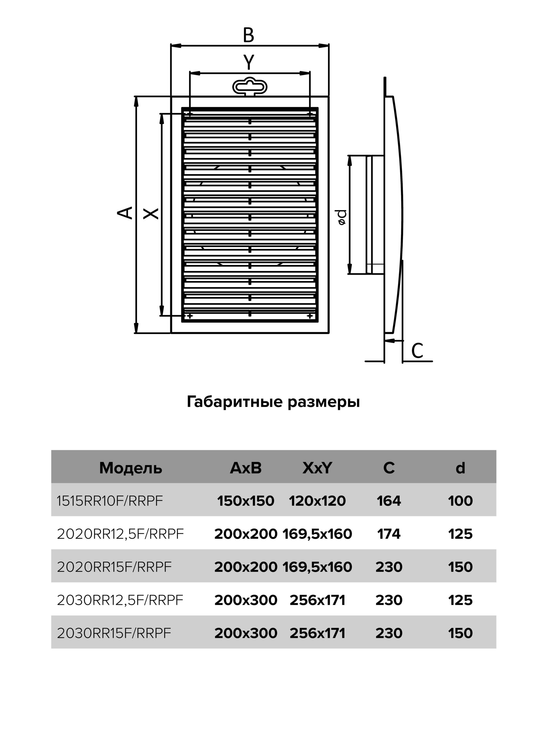Данные решетки могут монтироваться как самостоятельно при помощи саморезов, так и с воздуховодами соответствующего диаметра, используя монтажный фланец. RRF имеет наклонные жалюзи, которые помогают скрыть вентиляционный выход.