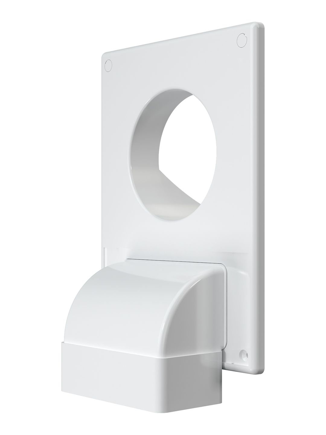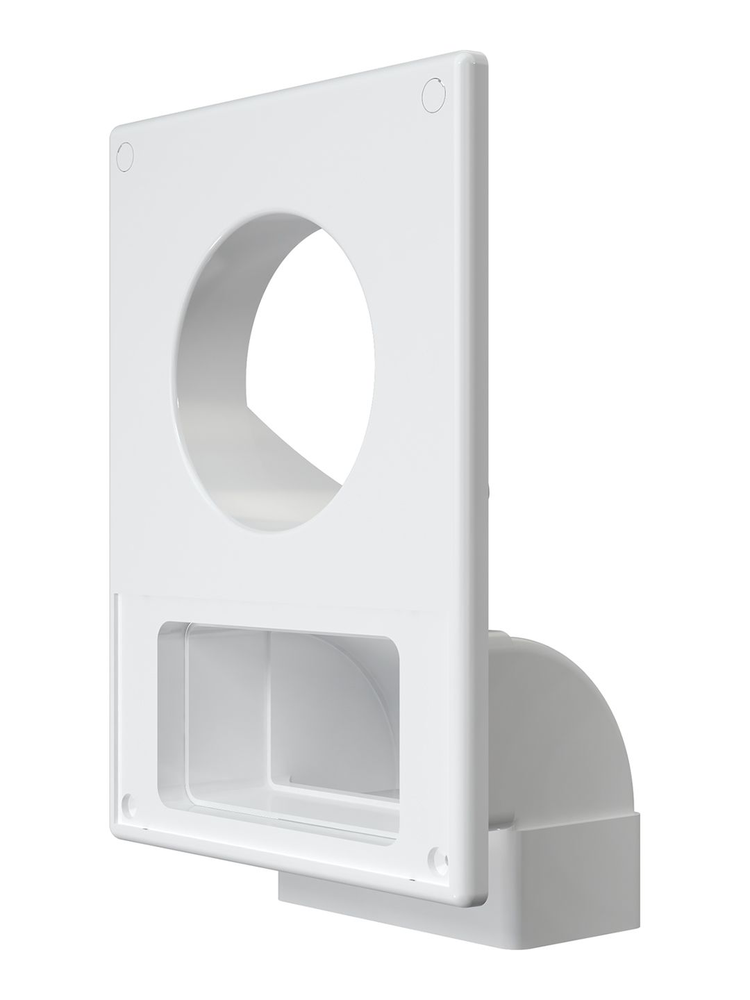 С круглыми воздуховодами монтируется напрямую, с гибкими воздуховодами и фасонными элементами круглого сечения — через соединитель, идущий в комплекте. С плоскими воздуховодами монтируется через колено или соединитель.