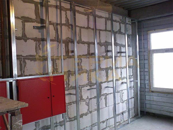 - Крепление основы для декоративной отделки на металлические направляющие