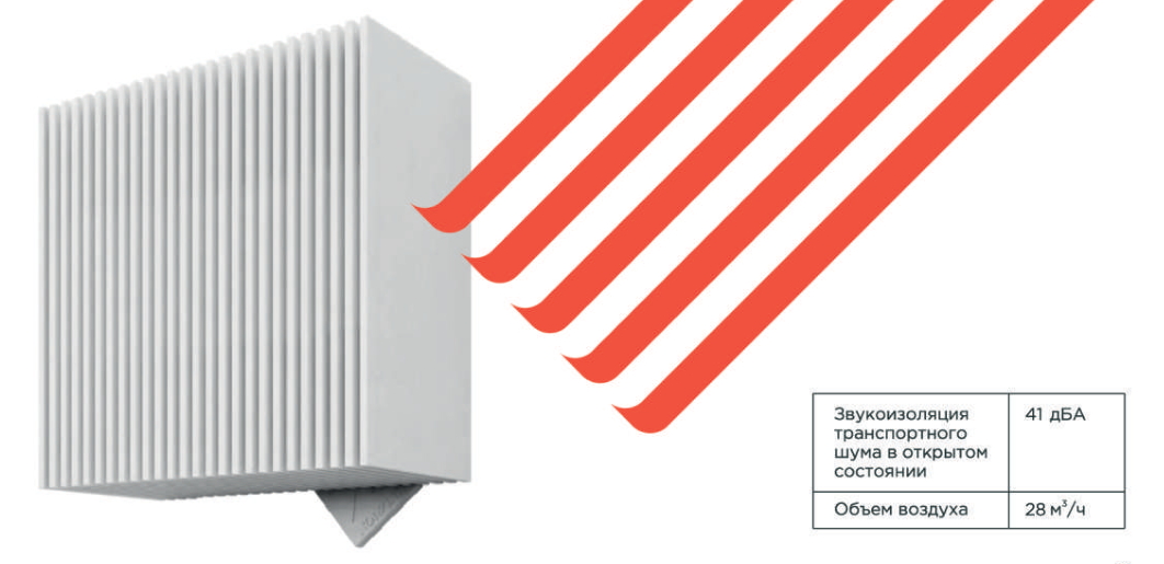Клапан Norvind pro с выходом в оконный откос предназначен для строительных и проектных организаций, которым важно избежать появления вентиляционных отверстий на фасаде здания. Устройство обеспечивает приток воздуха 28 м³/ч при 10 Па, что соответствует нормативам СП 60.13330.2012 и СП 518.1311500.2022.