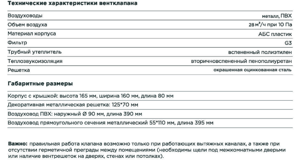 Монтаж осуществляется следующим образом: воздуховод диаметром 90 мм проходит сквозь стену, после чего в воздушном зазоре навесного фасада подключается к колену с переходом на прямоугольное сечение. Воздуховод выводится в оконный откос и закрывается декоративной решёткой, которая окрашивается в цвет откоса. В результате клапан остаётся незаметным с фасада.