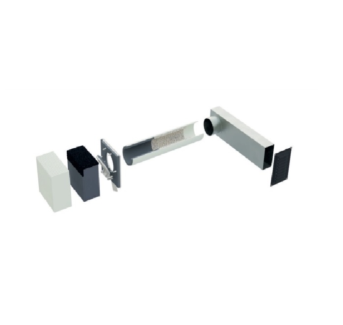 Монтаж осуществляется следующим образом: воздуховод диаметром 90 мм проходит сквозь стену, после чего в воздушном зазоре навесного фасада подключается к колену с переходом на прямоугольное сечение. Воздуховод выводится в оконный откос и закрывается декоративной решёткой, которая окрашивается в цвет откоса. В результате клапан остаётся незаметным с фасада.