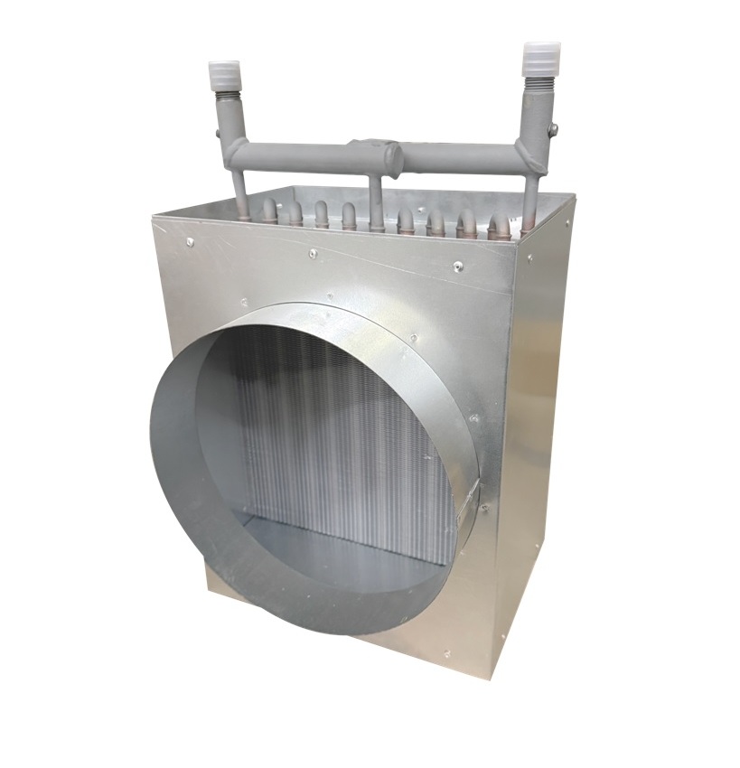 Воздухонагреватель для круглых каналов предназначен для подогрева воздуха и других невзрывоопасных газовых смесей в системах вентиляции и кондиционирования. Конструкция состоит из теплообменника и корпуса.