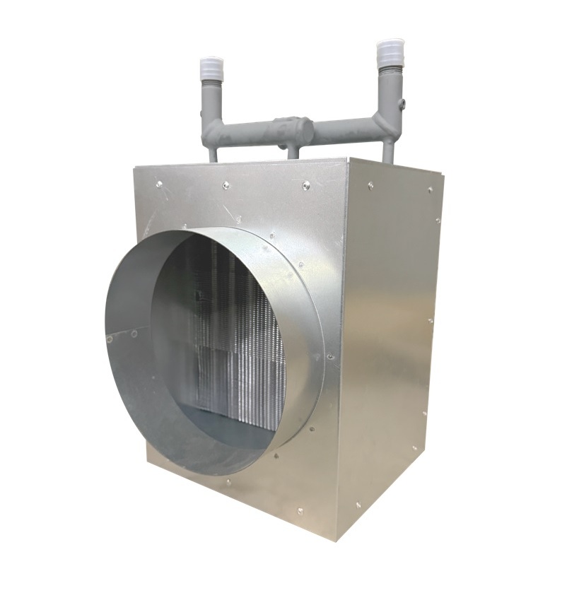 Воздухонагреватель для круглых каналов предназначен для подогрева воздуха и других невзрывоопасных газовых смесей в системах вентиляции и кондиционирования. Конструкция состоит из теплообменника и корпуса.