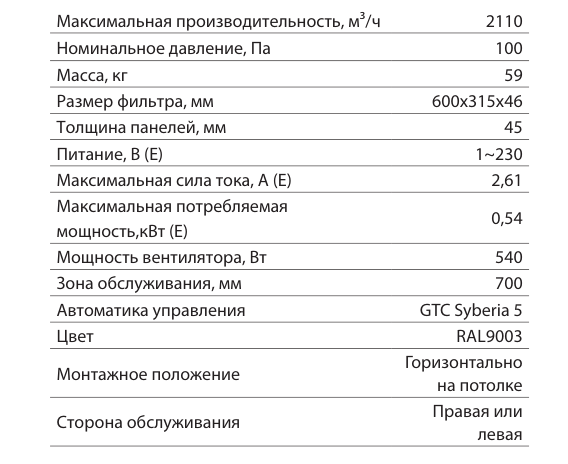 Благодаря EC вентилятору, достигается высокая энергоэффективность установки, а за счет большого сечения фильтра, оборудование достигает отличных результатов.