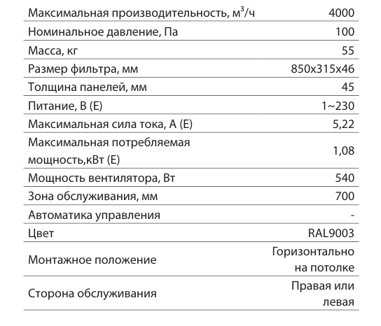 Благодаря EC вентилятору, достигается высокая энергоэффективность установки, а за счет большого сечения фильтра, оборудование достигает отличных результатов.